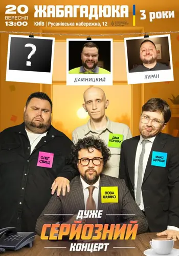 концерт Дуже серйозний концерт. ЖАБАГАДЮКА - 3 роки Київ 2025-09-20 13:00 Київський культурний кластер «Краків»
