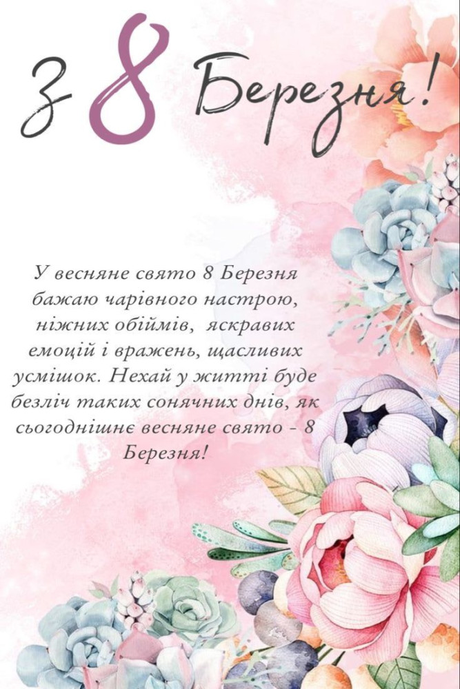 Дуже красиві оригінальні душевні Листівки Привітання з 8 Березня