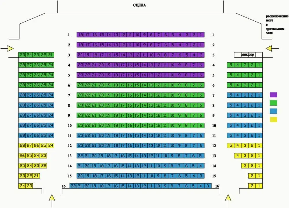 | Театр / моно-вистава | Основна зала | залежить від постановки | чи є вікові обмеження, тривалість, антракт |
