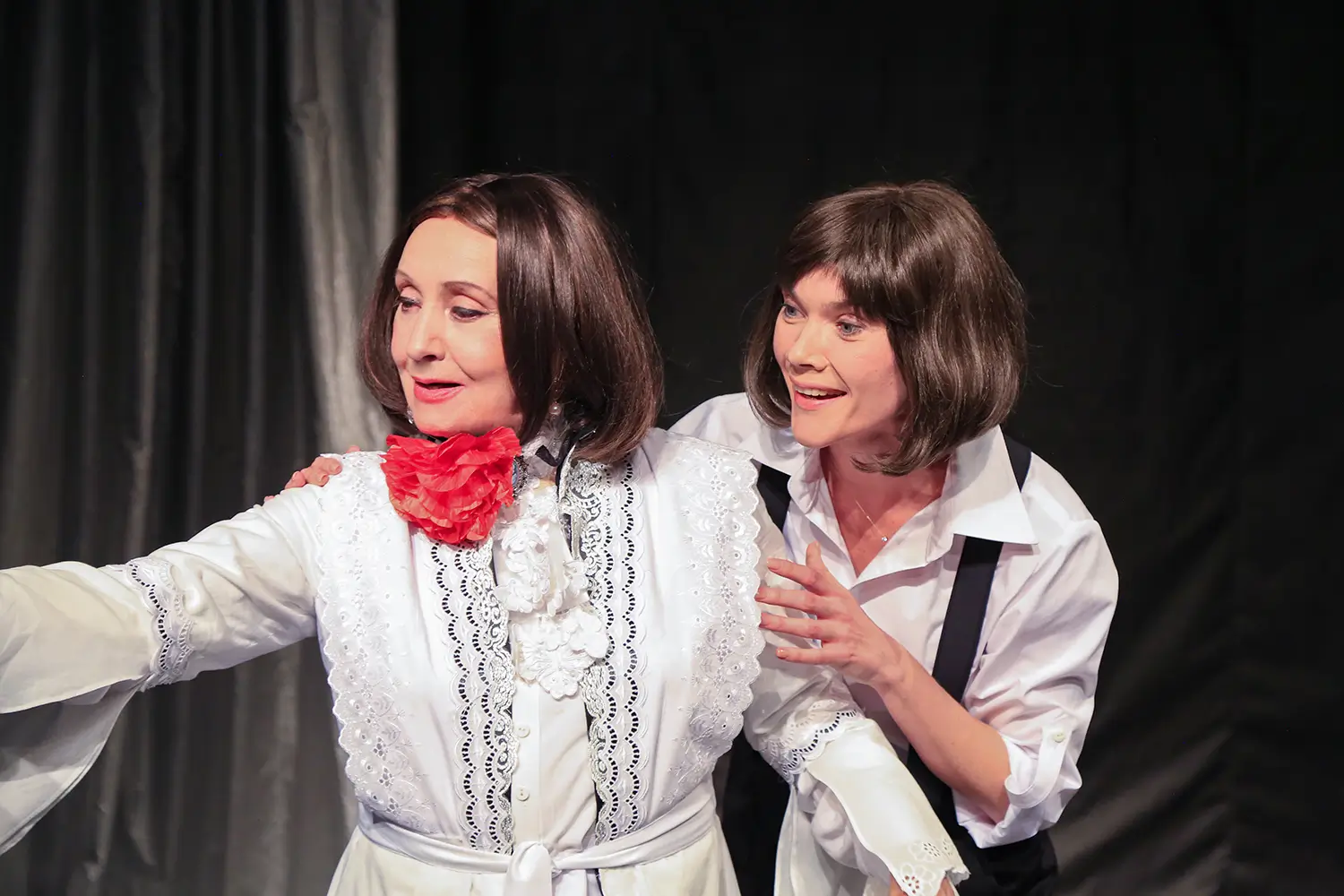 Особливе значення виставі надає постать Лариси Кадочнікової — видатної актриси, чия сценічна присутність перетворює кожну роль на подію. Для неї ця постановка — більше, ніж черговий вихід на сцену. Це бенефіс, в якому актриса не просто виконує роль Жорж Санд — вона проживає її зсередини, пронизує емоцією, особистим досвідом, внутрішнім болем і мудрістю, накопиченою за роки в театрі.