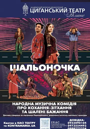 Народна музична комедія «Шальоночка» у Київському циганському театрі «Романс» — це справжній феєрверк емоцій, пісень, танців і яскравих характерів, що переносить глядача у світ народного гумору, щирих почуттів і непідробної життєвої енергії.