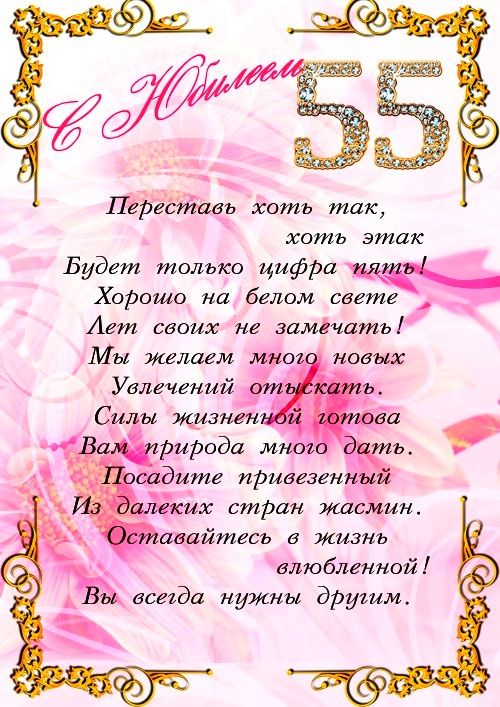 Очень красивые оригинальные душевные Открытки Поздравления с юбилеем 55 лет женщине в прозе и стихах