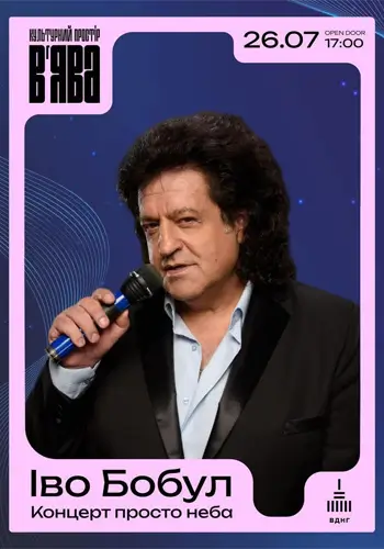 концерт ИВО БОБУЛ С КОНЦЕРТОМ ПОД ОТКРЫТЫМ НЕБОМ в «В’ЯВА» Киев 2025-07-26 19:00 Культурное пространство «В’ЯВА» (V’YAVA)