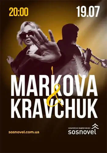 19 июля 2025 года приглашаем вас на уникальное событие — живое выступление дуэта Markova & Kravchuk в загородном комплексе отдыха Sosnovel, недалеко от Киева. Это будет вечер, где музыка превратится в эмоцию, а сцена — на простор для настоящих впечатлений.