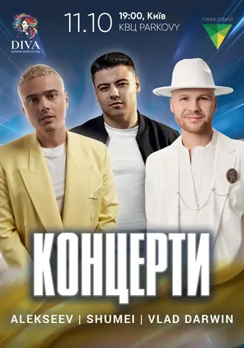 концерт Три концерта в 1 вечер: SHUMEI, ALEKSEEV, Vlad Darwin, в рамках фестиваля DIVA. Киев 2025-10-11 19:00 ROOF restaurant (КВЦ PARKOVY)