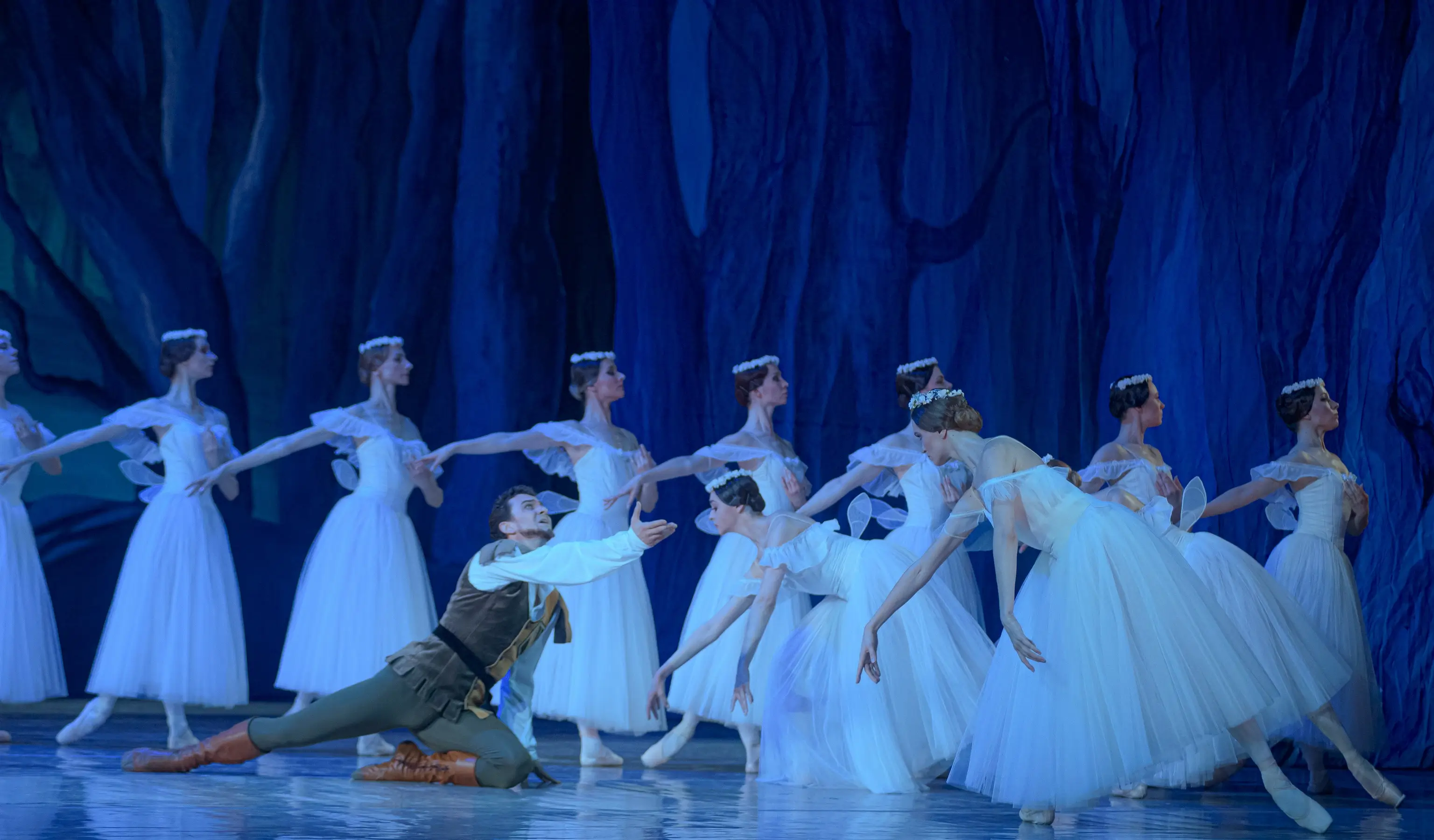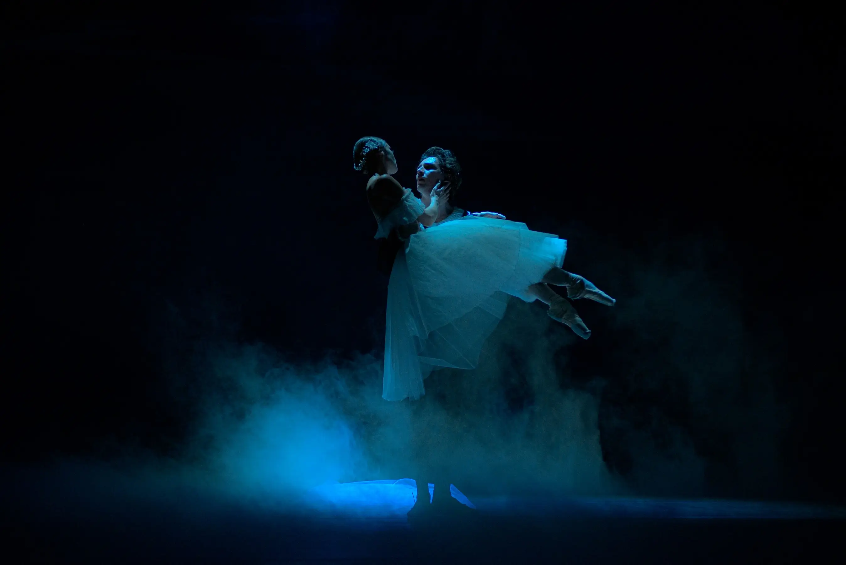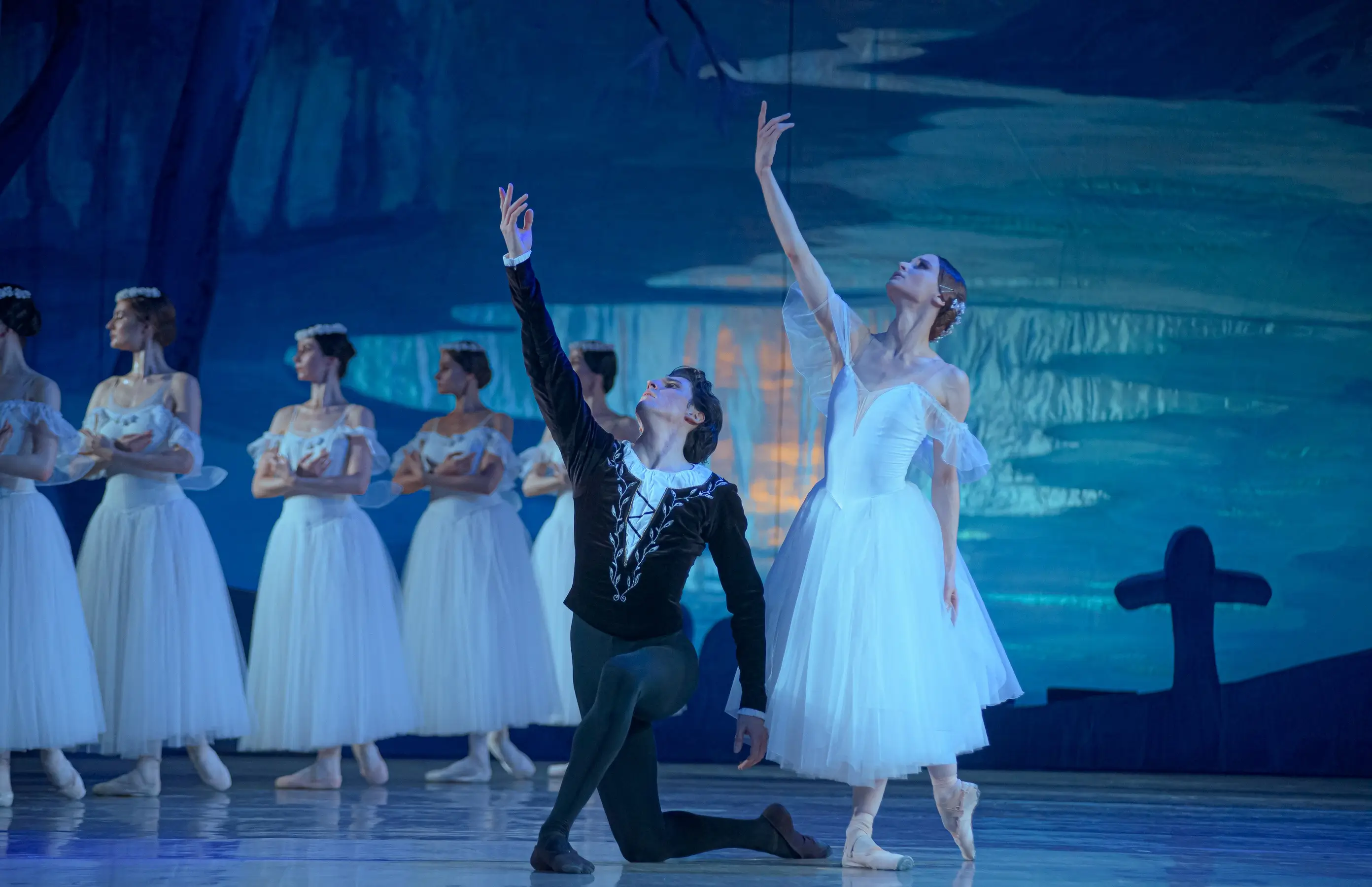 Танцовщики Национальной оперы Украины демонстрируют не только виртуозную технику, но и искреннюю внутреннюю драму. В главных партиях — ведущие солисты театра, превращающие классические па в живые эмоции. Их танец — это рассказ без слов, где каждое движение, каждое прикосновение — как удар сердца. Особенно трогательна сцена «белого акта» — второе действие, где танцовщицы в образах виллис создают на сцене эффект настоящего сна или воспоминания, легкого, эфемерного и одновременно пронзительного.